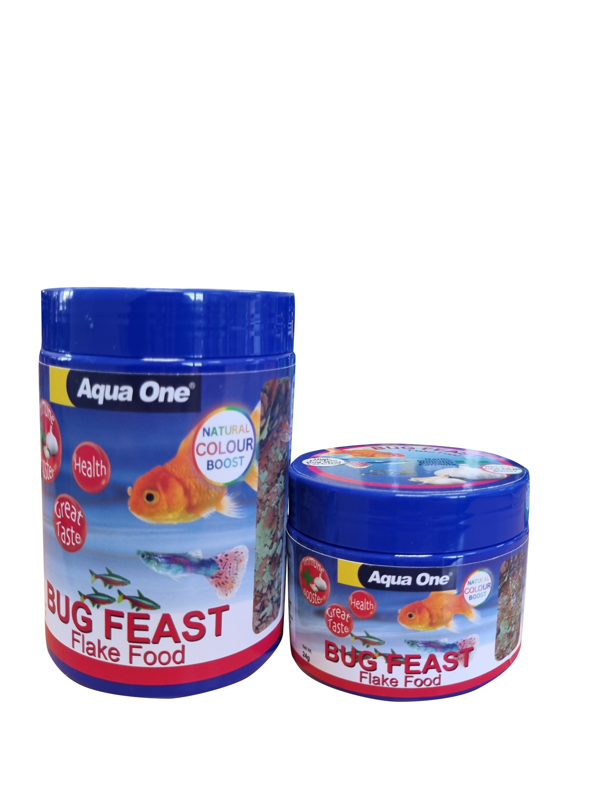Bug feast granules (Aqua One) — An insect-rich formula that mimics natural feeding for many tropical fish. Great as a staple or rotation food to add variety.